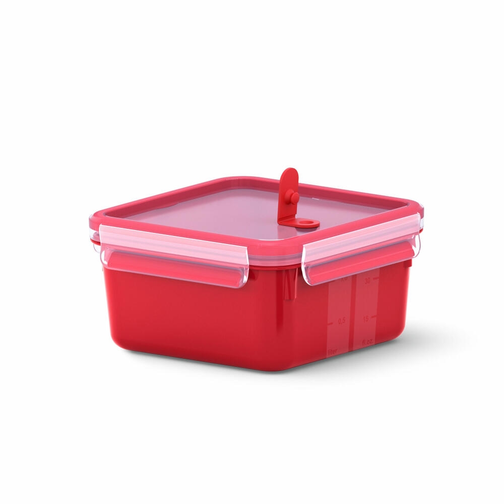 Emsa CLIP & MICRO Mikrowellendose Quadratisch, Lunchbox, Frischhaltedose, Kunststoff, Rot, 1.3 L, N1060400