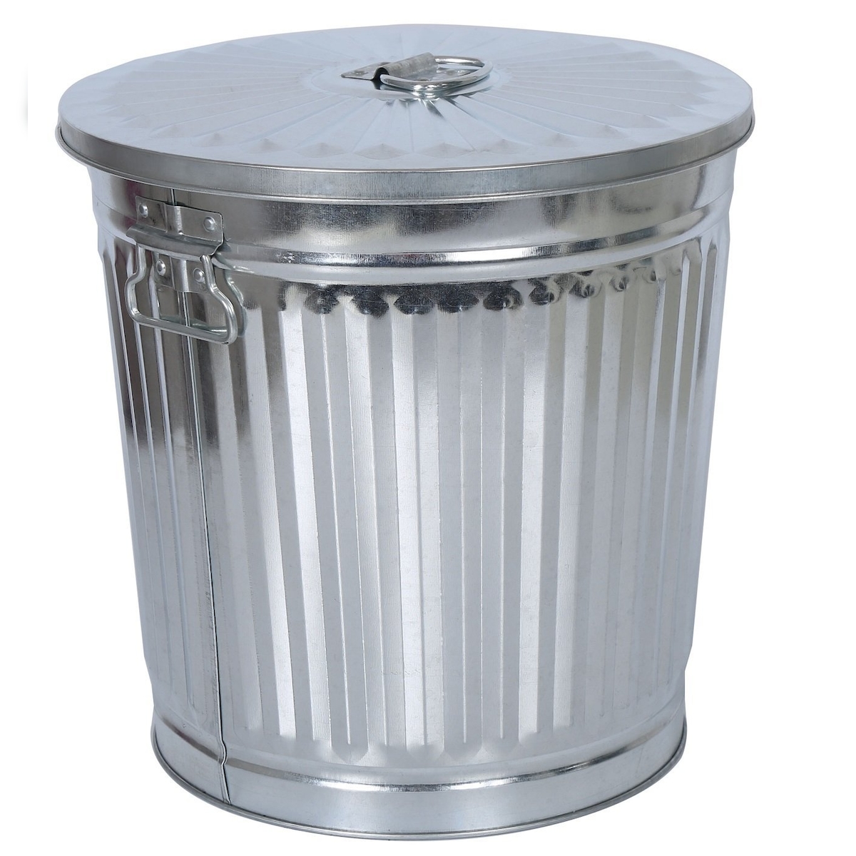 H&D Manufaktur Jinfa Mülleimer mit Deckel, Ascheeimer, Abfallbehälter, Mülltonne, Papierkorb aus Metall Zink, Ø 36 cm, Höhe 36,5 cm 35 Liter