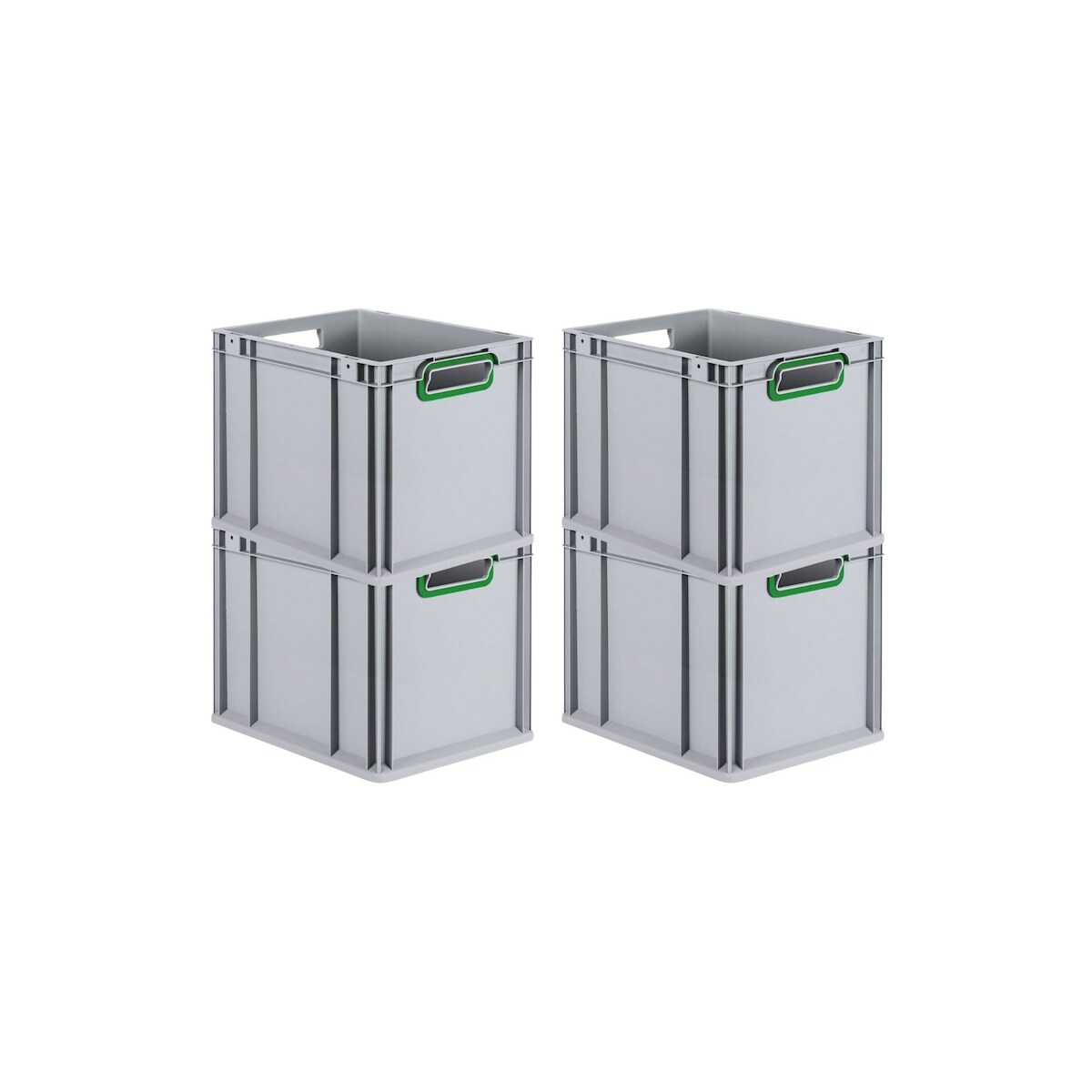 PROREGAL 4x Eurobox NextGen Color | HxBxT 22x30x40cm | 30 Liter | Griffe grün offen | Glatter Boden | Eurobehälter