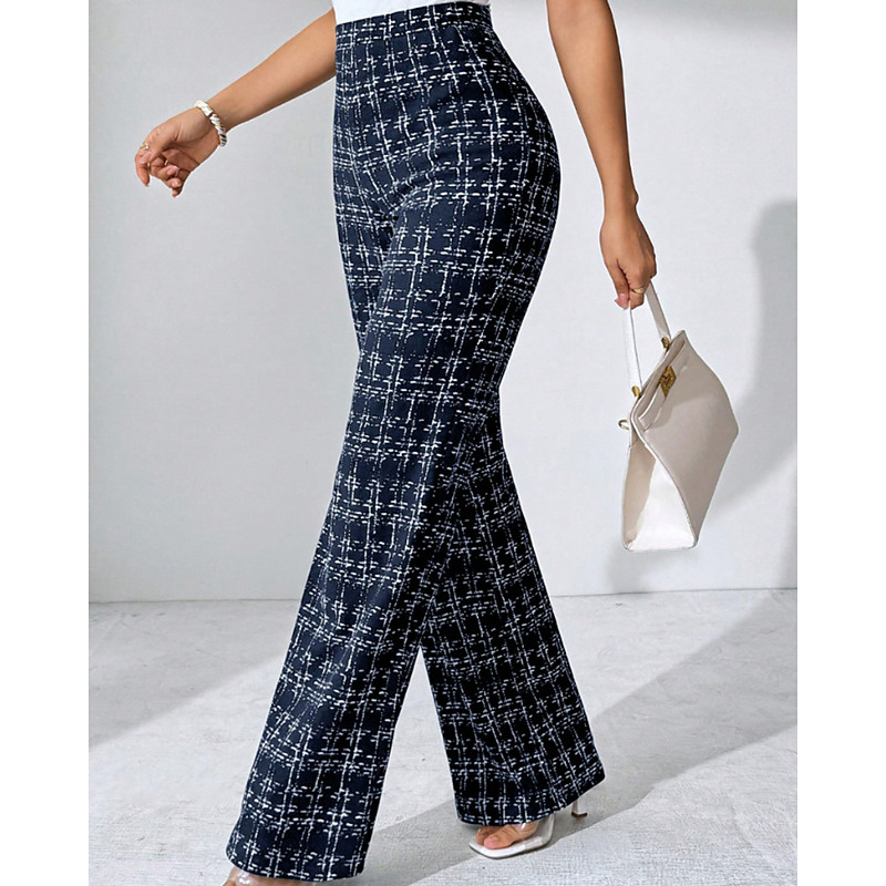 Women's Wide Leg Slacks Streetwear Casual Full Length Natural Plaid Elastic Waist Comfy Street Holiday Daily Wear Black White Green Dark Blue Fall Regular Fit