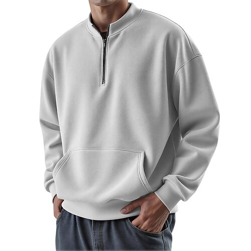 Per uomo Maglia Maglione Felpa con zip corta Blu Nero Verde chiaro Rosa Blu marino Colletto Mao Semplice Con zip Tasca a marsupio Casuale Quotidiano Sport Outdoor Vintage Streetwear Cool Primavera