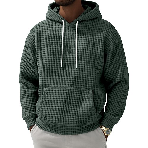 Per uomo Felpa con cappuccio Felpa con cappuccio a nido d'ape Blu Aalbicocca Rosso bordeaux Nero Verde chiaro Con Cappuccio Semplice Tasca a marsupio Testurizzato Sport Outdoor Casuale Quotidiano