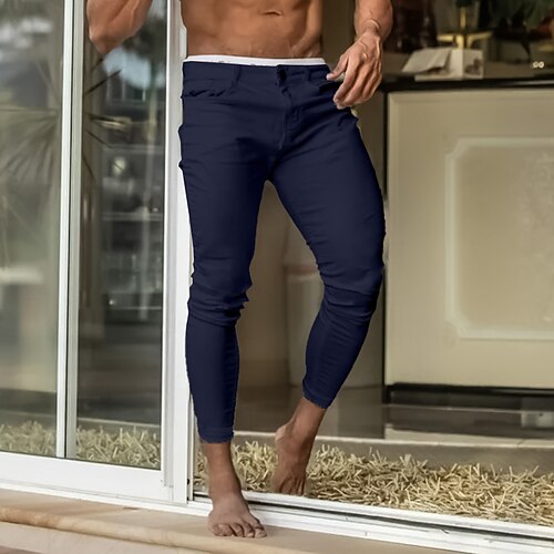 Herren Anzughosen Hose Hosen Chinesisch Chino Knopf Tasche Feste Farbe Komfort Formal Party Arbeit Modisch Klassicher Stil Schwarz Marineblau Mikro-elastisch