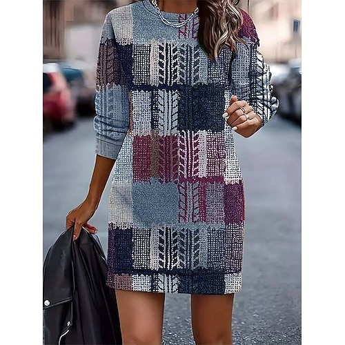 Per donna Mini Abito Abito a Tubino Casual Weekend Vestibilità regolare Grafico Geometrico Manica Lunga Girocollo Rosso Blu Viola Verde Autunno Inverno