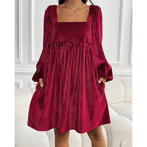 Per donna Mini Abito Abito in Velluto Vestito da Festa Elegante Moderno Festa serale Feste Cocktail party Vestibilità regolare Semplice Manica Lunga Girocollo Vino Verde scuro Marrone Primavera