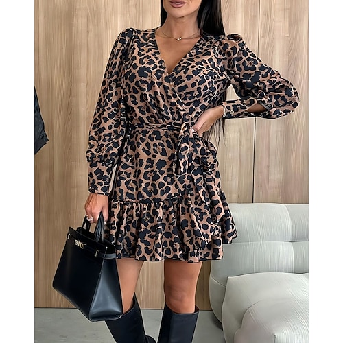 Per donna Mini Abito Vestito Casual Abito Stampato Elegante Moda Moderno Quotidiano Ferie Uscire Vestibilità regolare Leopardo Manica Lunga Scollo a V Blu Leopardo Rosso Verde Estate