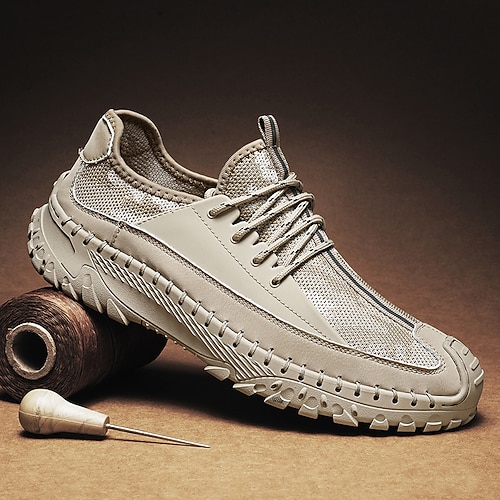 Beigefarbene Outdoor-Sportschuhe für Herren mit atmungsaktivem Mesh-Obermaterial – bequemes und leichtes Schuhwerk zum Wandern, Laufen und für Outdoor-Abenteuer.