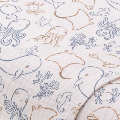 Tissu mousseline/double gaze "animaux de la mer", blanc/coloré