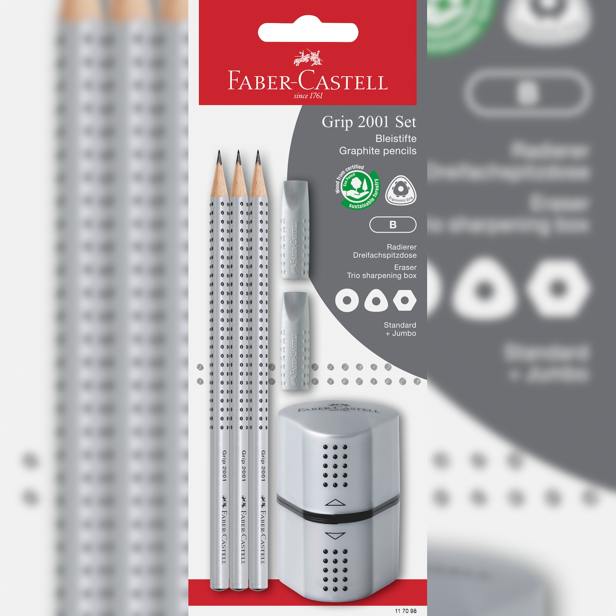 Faber-Castell Grip 2001 Set 3 BS silber in Blisterkarte