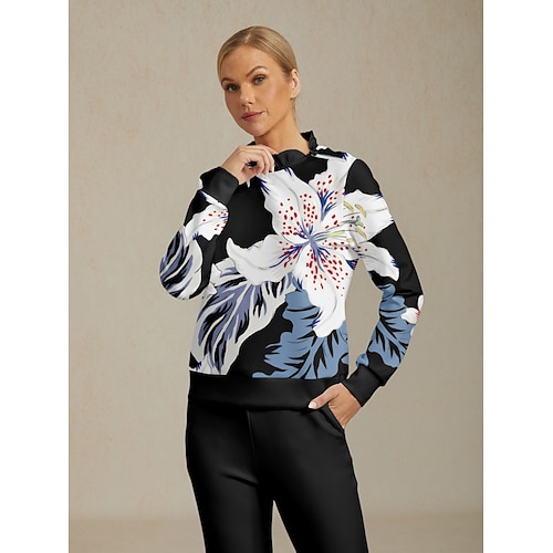 Per donna Blusa Top Eleganti Grafico Semplice Lettera Elegante Vintage Tropicale Manica Lunga Girocollo Top Regolari Lavoro Quotidiano Ferie Patchwork Stampato Bianco e nero Nero Bianco Rosa Rosso