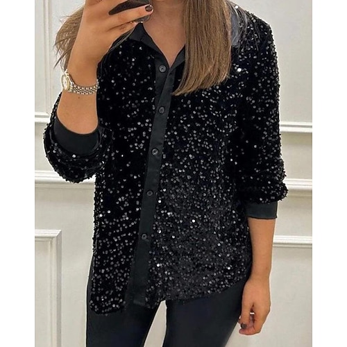 Per donna Camicia Blusa Top con paillettes Semplice Elegante Manica Lunga Colletto a Camicia Top Regolari Quotidiano Uscire Paillettes Argento Nero Rosso Viola Oro Autunno Inverno