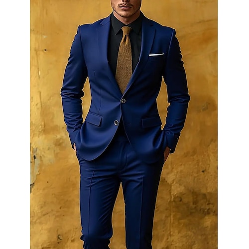 Uomo Matrimonio Feste Abiti da lavoro Bavero classico Nero Blu reale Formale Tinta unita Vestibilità su misura 2 pezzi Monopetto Due Bottoni