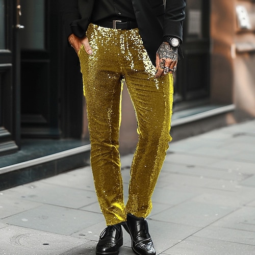 Per uomo Pantaloni Pantaloni Eleganti Pantaloni da ballo Patchwork Metallico Lucido Semplice Comodità Lunghezza intera Feste Quotidiano Discoteca Moda Streetwear Argento Nero Inelastico