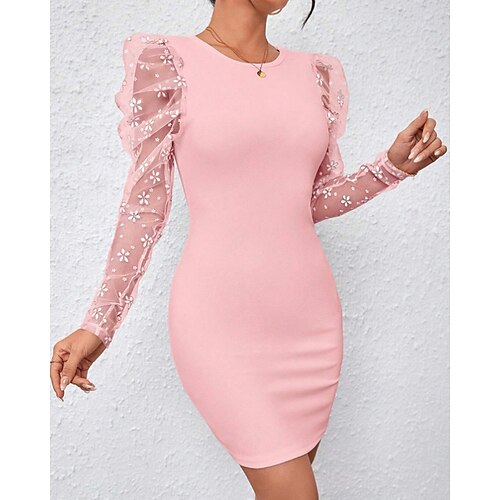 Per donna Mini Abito Abito nero Tubino Moderno Quotidiano All'aperto Feste Vestibilità regolare Semplice Manica Lunga Girocollo Nero Bianco Rosa Azzurro Primavera Autunno