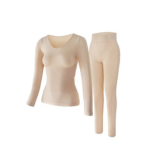 Damen Kompressions-Workout-Baselayer Kaltes Wetter Oben Unten Basisschicht oben und unten Kombination Winter Rot Khaki sportlich Laufen Fitness Hohe Taille Fleece-Futter Weich Langarm Sport