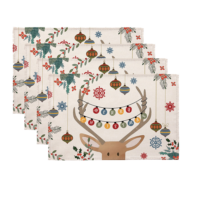 4pcs/set Christmas Placemats – Cotton and Linen Seasonal Winter Xmas Table Mats with Snowman Reindeer Design for Outdoor Indoor Home Party Kitchen Dining Decor, 30x45cm (12x18 Inch)