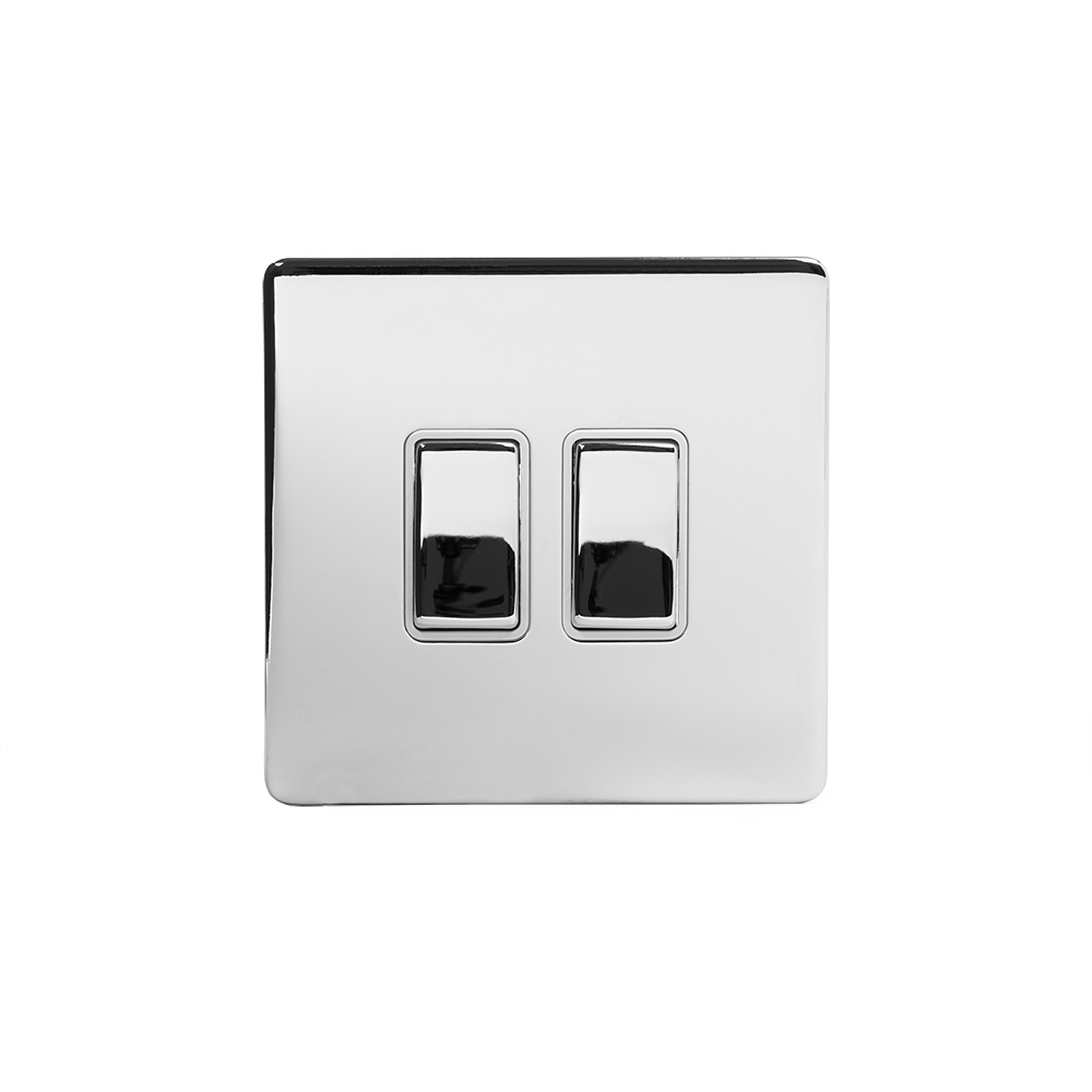 Soho Lighting Polished Chrome 2 Gang 2 Way 10A Light Switch Wht Ins Screwless - Size: 86mm x 86mm x 4.5mm