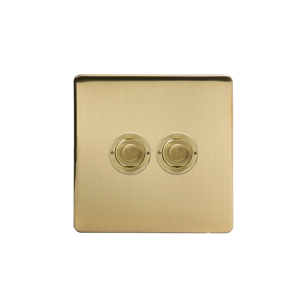 Soho Lighting Brushed Brass 2 Gang 6A 2 Way Push Button Switch