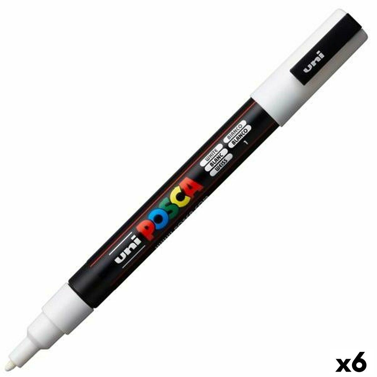 POSCA PC-3M markør - hvid, 6 stk.