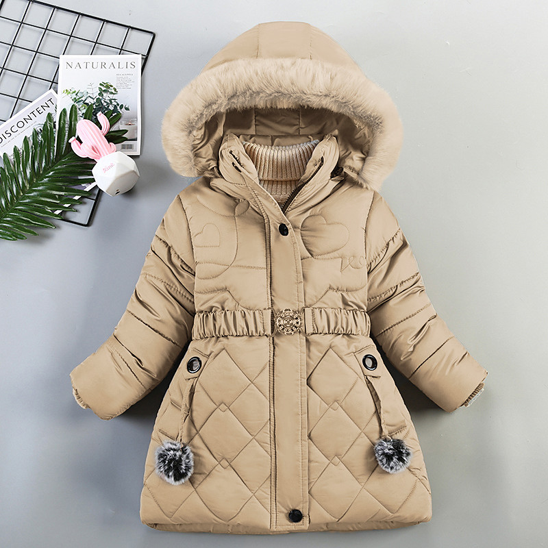 Kids Girls' Down Coat Solid Color Fashion Fur Trim School Coat Outerwear 4-12 Years Fall Black Wine Navy Blue