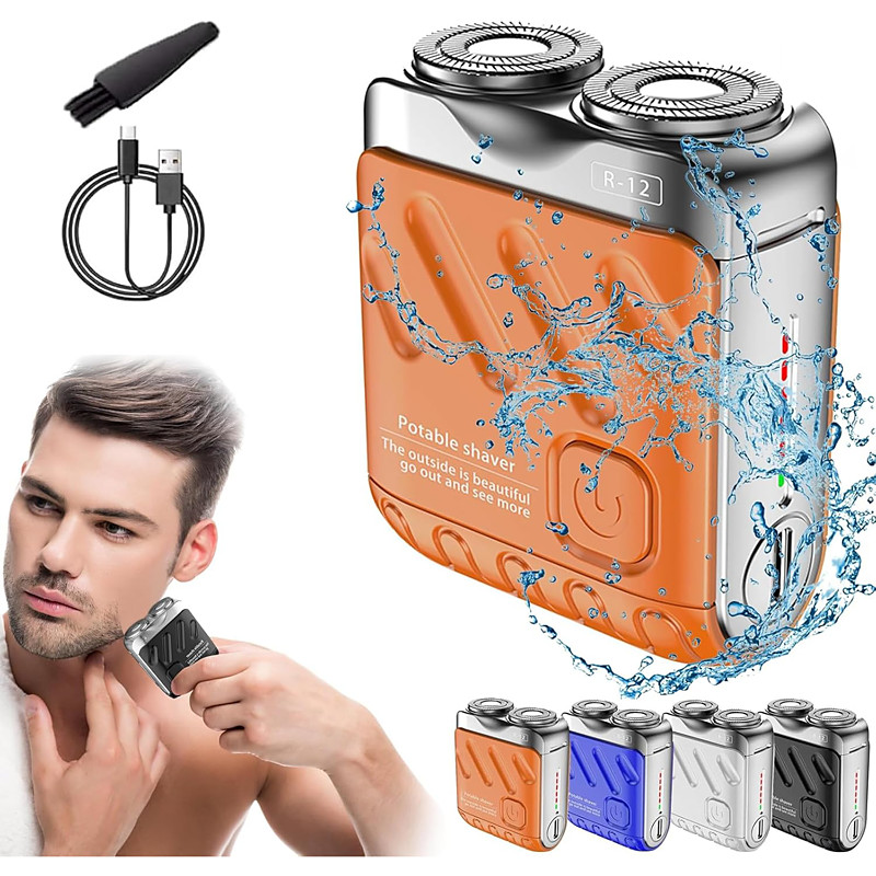 Portable Rotary Dual Ring Electric Shaver, Mini Beard Shaver with Suitcase Design, Waterproof Travel Electric Razor for Men, Fast Charging Long Battery Life Double-Ring Magnetic Cutter