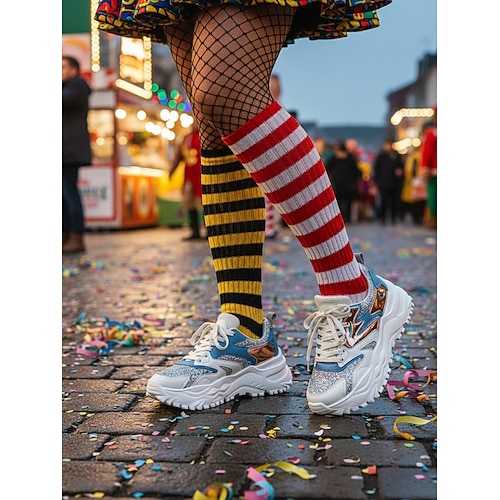 Rote und weiße Damen-Sneaker für entspanntes Gehen – weiche, flexible Sohle, sportlicher Retro-Stil, ideal für festliche Outfits, Erledigungen im Alltag, Spaziergänge und weihnachtliche Looks