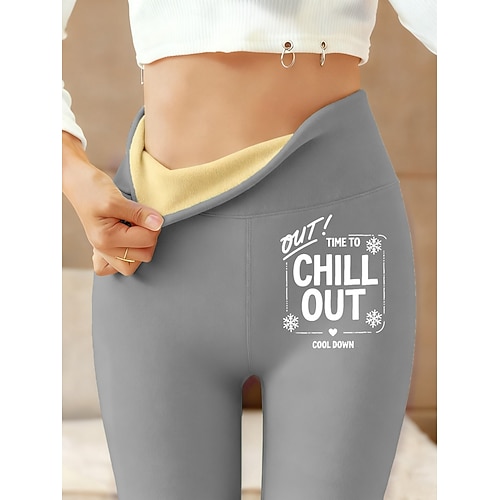 Per donna leggings foderati in pile Leggings Moda Essenziale Casual Lunghezza intera Vita Alta Lettera Calore Termico Comodo Confortevole Elasticizzato All'aperto Casual Casuale Nero Rosa Blu Verde