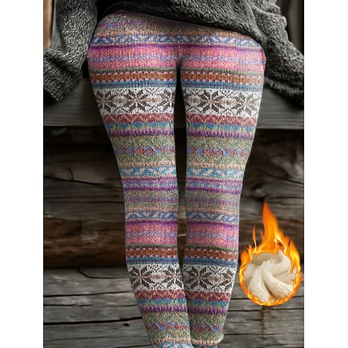 Per donna Leggings Vacanza Vintage Stile Etnico Lunghezza intera Vita Alta Grafico Astratto Calore Termico Comodo Confortevole Elasticizzato All'aperto Casual Casuale Giallo Rosa Blu Viola Estate