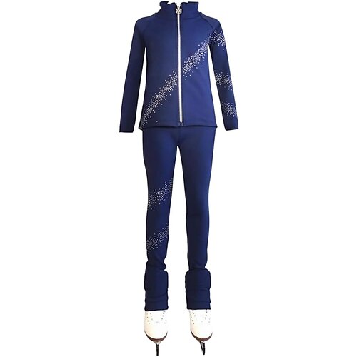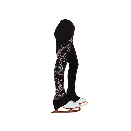 pantaloni da pattinaggio artistico da donna e da ragazza, pantaloni da pattinaggio sul ghiaccio, neri, rosa, blu, elasticizzati, allenamento, competizione, abbigliamento da pattinaggio, termico,