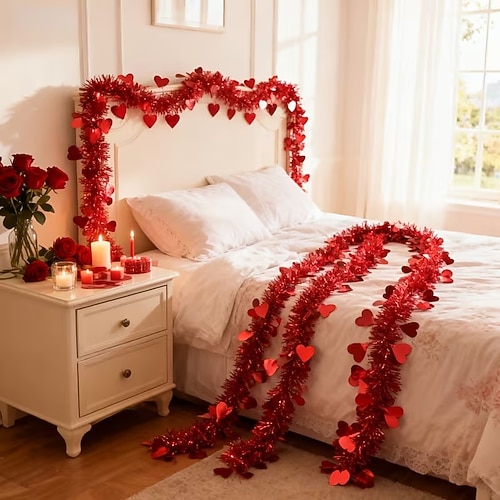 6 m lange künstliche Herzgirlande zum Valentinstag – dekorative künstliche Blumen – roter Herzkranz mit Hängeschleife, geeignet für Hochzeitsfeiern und DIY-Dekorationen zum Valentinstag