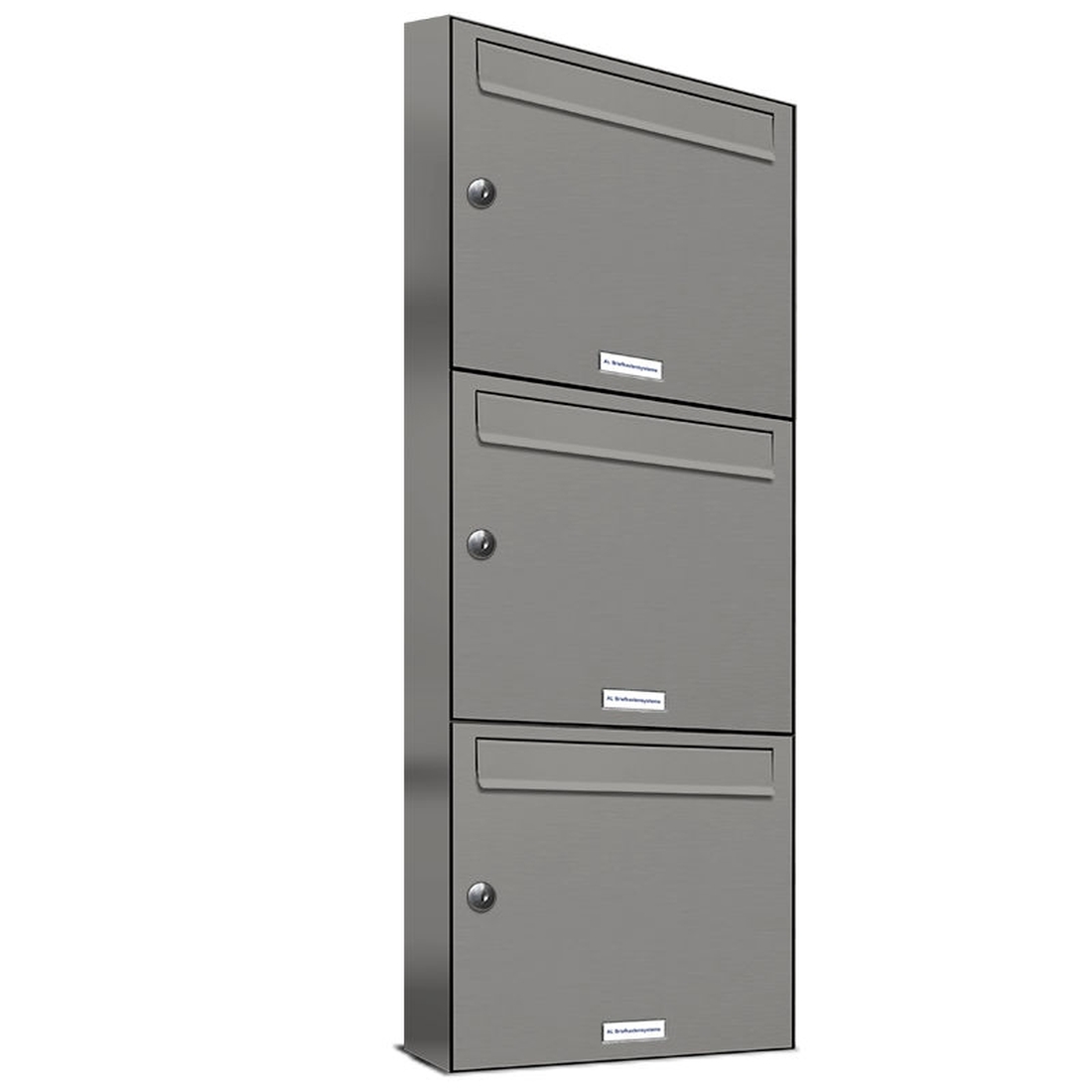 AL Briefkastensysteme 3 Fächer Premium Wand Briefkasten Anlage A4, in RAL 9007 Aluminium Grau und wetterfest, Artikelnummer: 331P3EA1P9007