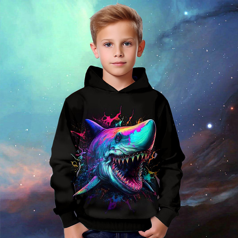 Boys 3D Animal Shark Hoodie Pullover Long Sleeve 3D Print Fall Winter Fashion Streetwear Cool Kids 3-12 Years Outdoor Casual Daily Regular Fit