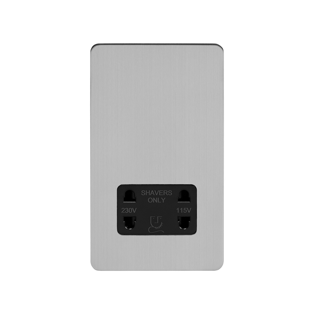 Soho Lighting Brushed Chrome Flat Plate Shaver Socket 230/115V Plate Blk Ins Screwless