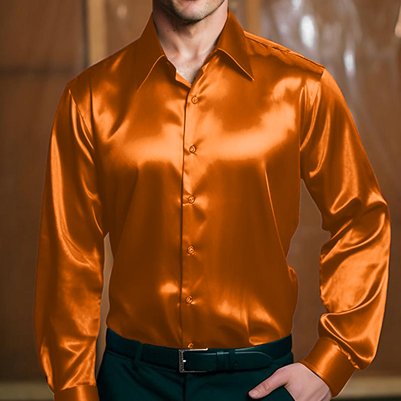 Men's Shirt Silk Like Satin Shirt Dress Shirt Casual Shirt Button Up Shirt Plain Formal Wedding Black White Red Blue Long Sleeve Lapel All Seasons Clothing Apparel