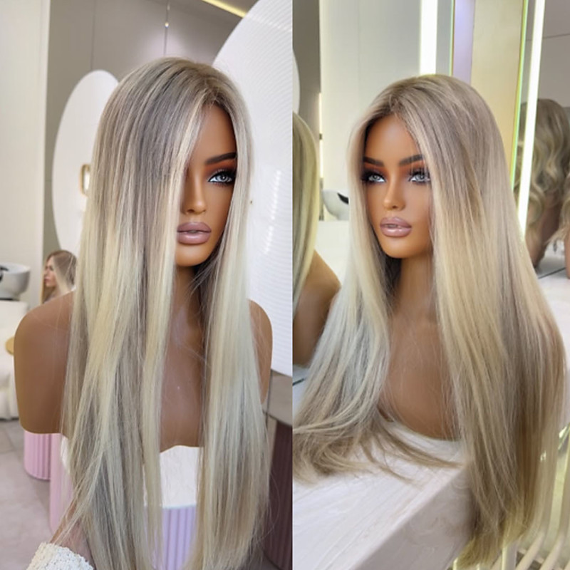 Brazilian Virgin Hair Glueless 5x5 Lace Closure Wigs Ash Blonde Ombre Highlight Lace Frontal Wig Natural Hairline Pre-Plucked For Women