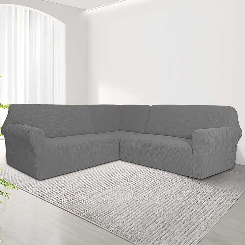 5-Seater Modular Sofa Cover Set - 3-Piece Sectional Couch Cover with 5x5 Grid Stitching and Jacquard Fabric Upholstery for Living Room