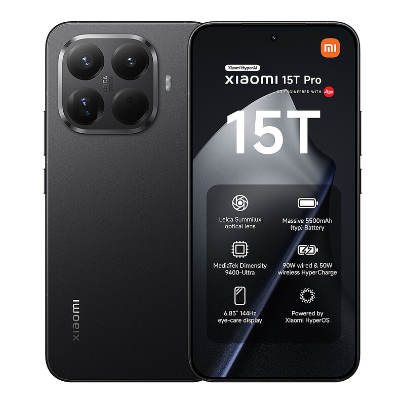 XIAOMI 15T Pro, Smartphone 12+512GB, 6,83" 144Hz Augenschutzdisplay, MediaTek Dimensity 9400+, 50MP Leica 5X Pro Teleobjektiv, 5500mAh, Schwarz, 2 Jahre Garantie.