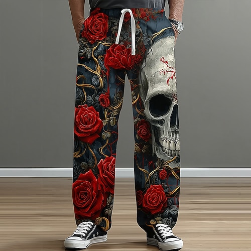 Per uomo Stampa Floreale Fiori Camicia Camicia Western Camicia da cowboy Manica Lunga Vintage Retrò All'aperto Vacanza Primavera Autunno Collo ripiegato Stampa 3D Camicia tipo lino Blu Nero Rosso