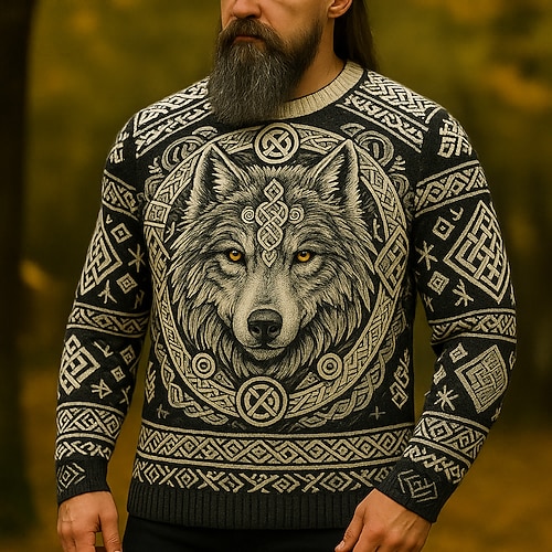 Per uomo Lupo Stampe Grafiche Maglia Maglione Manica Lunga Felpa Colletto Mao Streetwear Designer Essenziale Stampa 3D Sport Outdoor Casuale Quotidiano Allacciato Primavera Autunno