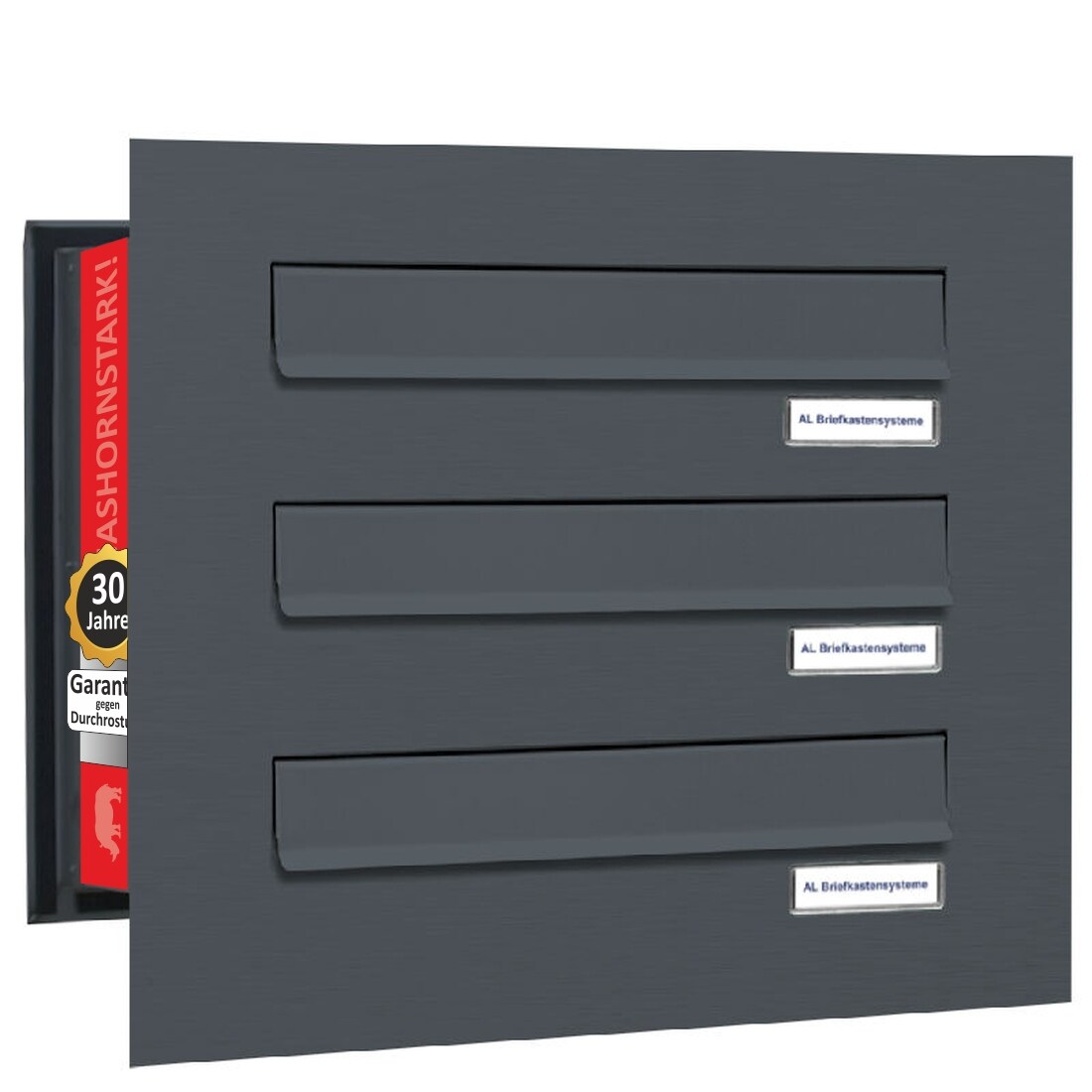 AL Briefkastensysteme 3 Fächer Premium Durchwurf Briefkasten A4 in RAL 7016 Anthrazit Grau, Post A4, robust, wetterfest, Artikelnummer: 132P3DV1P7016
