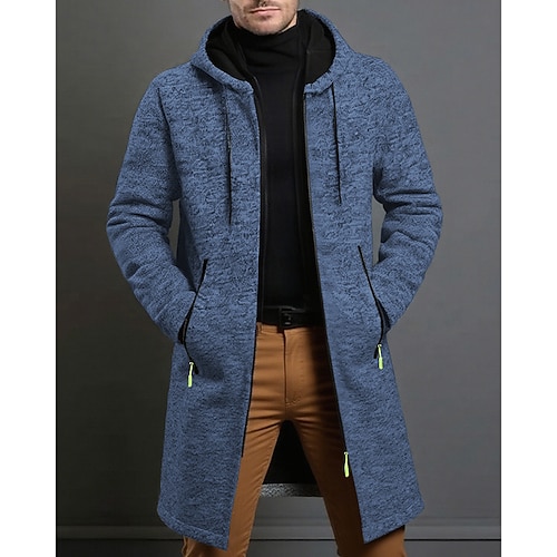 Per uomo Cappotto Trench Trench lungo Vacanza Quotidiano Primavera Inverno Poliestere Antivento Caldo Capispalla Abbigliamento Moda Classico Semplice Tasca Con Cappuccio Cerniera