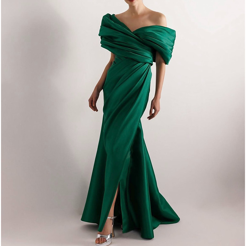 Mermaid Trumpet Floor Length Prom Dresses Evening Gown Ball Gown Formal Dress Elegant Celebrity Style Red carpet Sleeveless Off Shoulder Evening Party Garden Party Satin with Ruched Slit