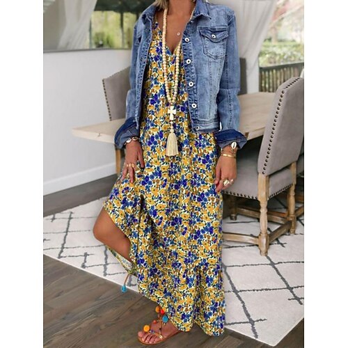 Per donna Abito maxi Abito a trapezio Casual Quotidiano Vestibilità comoda Floreale Astratto Manica Corta Scollo a V Blu Giallo scuro Verde Estate Primavera