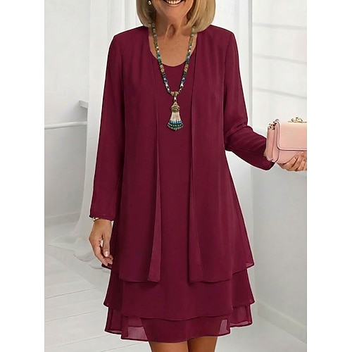 Per donna Abito al ginocchio Vestito Casual Set di vestiti Vestito in Chiffon Elegante Casual Quotidiano Weekend Vestibilità comoda Semplice Manica Lunga Girocollo Rosa chiaro Nero Vino Blu marino