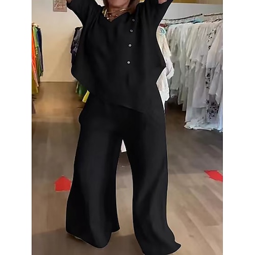 Per donna Set di Pantaloni Finto cotone e lino Manica 3/4 Girocollo Semplice Patchwork Vacanza Moda Streetwear Casuale Quotidiano All'aperto Nero Bianco Giallo Estate Vestibilità comoda
