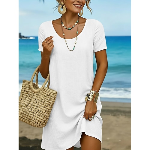 Per donna Abito al ginocchio 100% cotone Vestito Casual Essenziale Classico Quotidiano Vacanza Vestibilità comoda Colore Puro Manica Corta Girocollo Nero Bianco Viola Cachi Estate Primavera