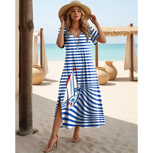 Per donna Abito maxi Vestito Estivo Abito a trapezio Abito Sottoveste Vacanza Casual Boho Spiaggia Vestibilità comoda Grafico Geometrico Graffiti Senza Maniche Scollo a V Blu bianco blu Giallo Rosso