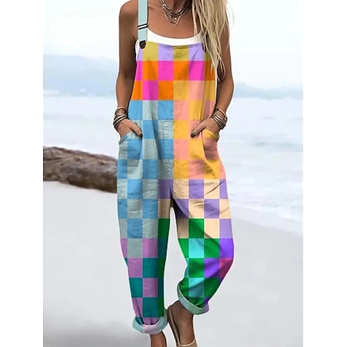 Per donna Salopette Attivo Floreale Senza Maniche Senza maniche Dritto Collo quadrato Tasca con tasca Vacanza Quotidiano Vestibilità comoda Blu Viola Arancione Estate