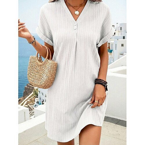 Per donna Mini abito Vestito Casual Vestito T-Shirt Abito Estivo Essenziale Classico Quotidiano Vacanza Vestibilità comoda Semplice Manica Corta Scollo a V Blu Nero Bianco Verde chiaro Estate
