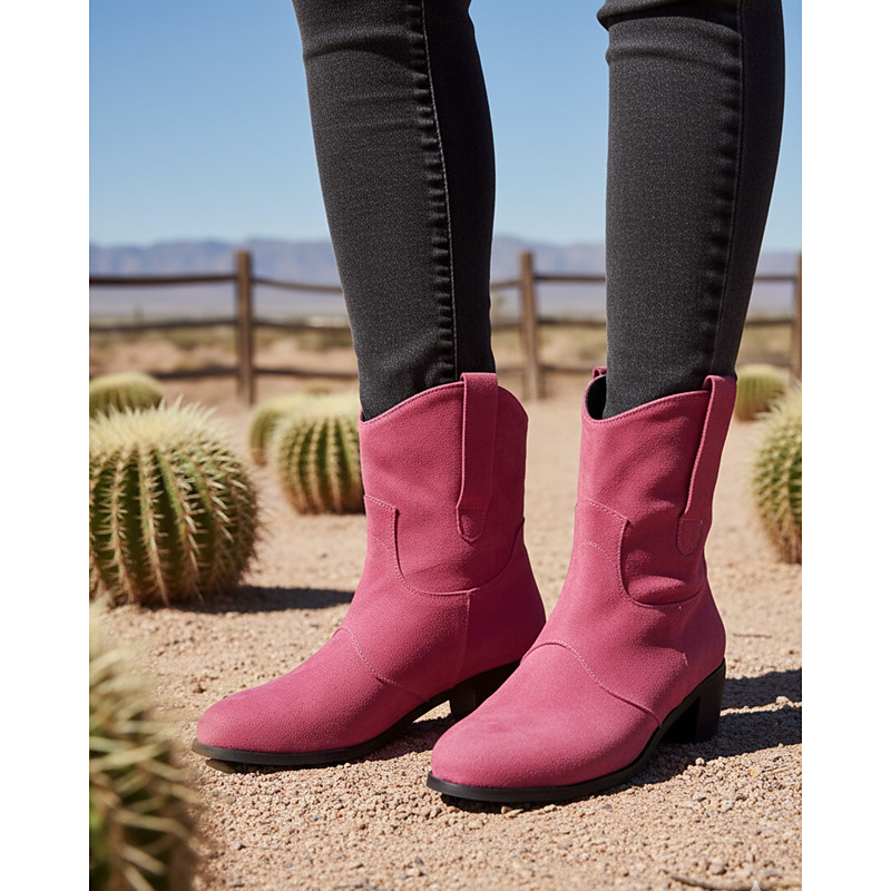 Women's Brown Faux Suede Western Ankle Boots – Vintage-Style Low Heel Cowboy Boots for Casual Outfits